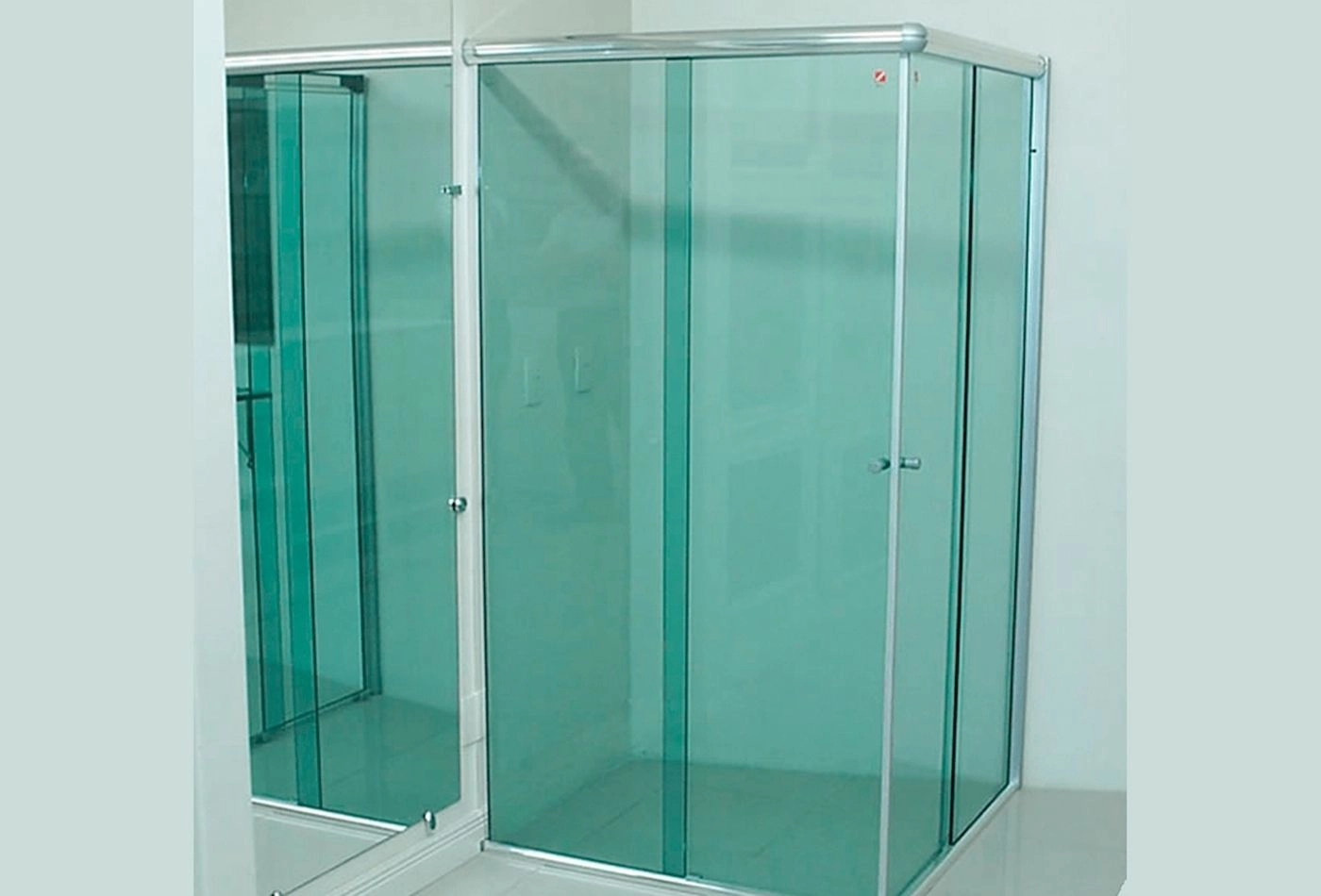 Perfeito para vãos de canto de 2 até 2.50m de largura, este modelo é ideal para quem busca maior espaço e acabamento sofisticado com a exposição de roldanas aparentes cromadas, combinando com qualquer cor de banheiro.